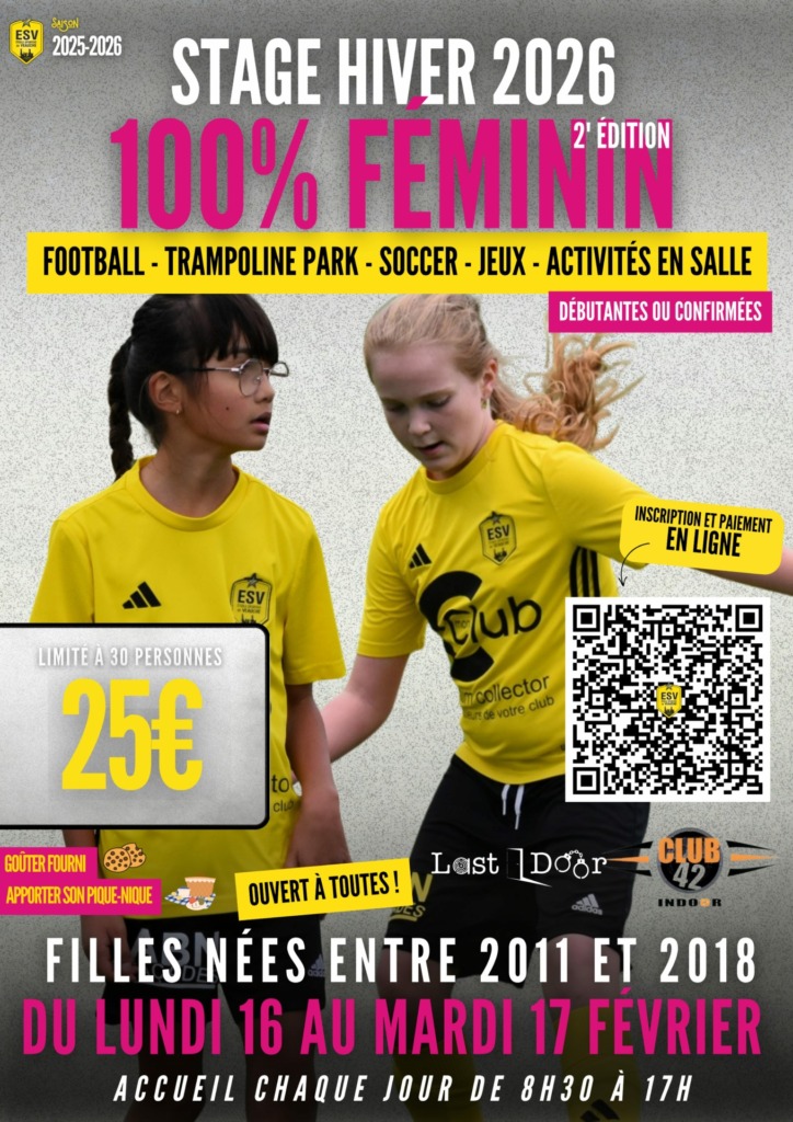 L’ES Veauche organise un stage 100 % féminin pendant les vacances d’hiver, les 16 et 17 février, destiné aux jeunes filles souhaitant découvrir ou pratiquer le football dans une ambiance conviviale et ludique.
