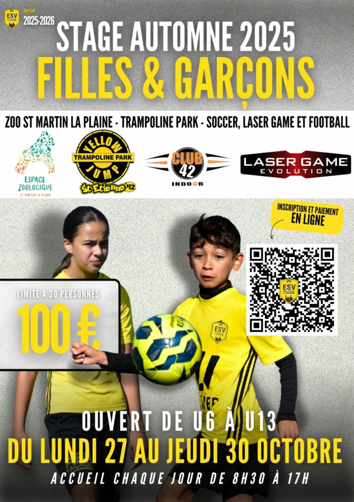 L’Étoile Sportive de Veauche (ESV) organise son stage d’Automne 2025 du lundi 27 au jeudi 30 octobre !